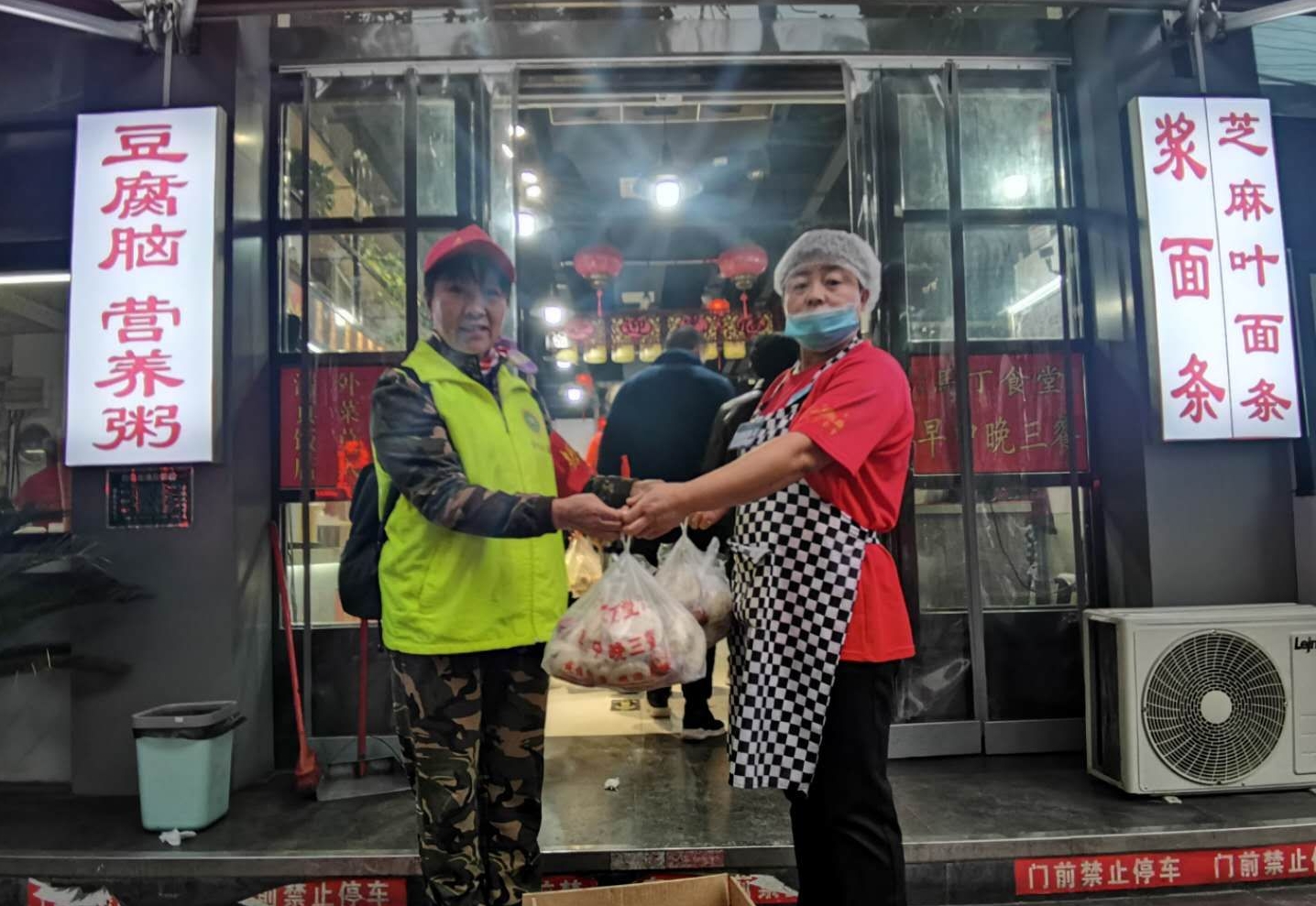 志愿者王新愛和顧連云得知愛心企業愿意提供早餐,他們早上6點就來到了馬丁餐廳五一路捐贈處取餐。隨后,把早餐陸續送到志愿者服務點。吃著美味的早餐,志愿者的心里暖暖的。
