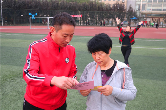 活動中,志愿者們向晨練的群眾發放健康運動提示卡、防范電信詐騙、掃黑除惡、不動產登記等方面的宣傳材料,免費派發“愛心粥券”;細心講解老年人常見的十大心理、常見病的預防等強身健體保健常識,引導群眾合法應對“保健品大促銷”、“集資詐騙”等典型詐騙行為;倡導老年人多了解法律知識,以提高識別詐騙、自我維權的能力。同時,志愿者們主動拾撿體育場內的樹葉、雜物等,為晨練群眾創造干凈衛生的健身環境,深受群眾喜愛和稱贊。