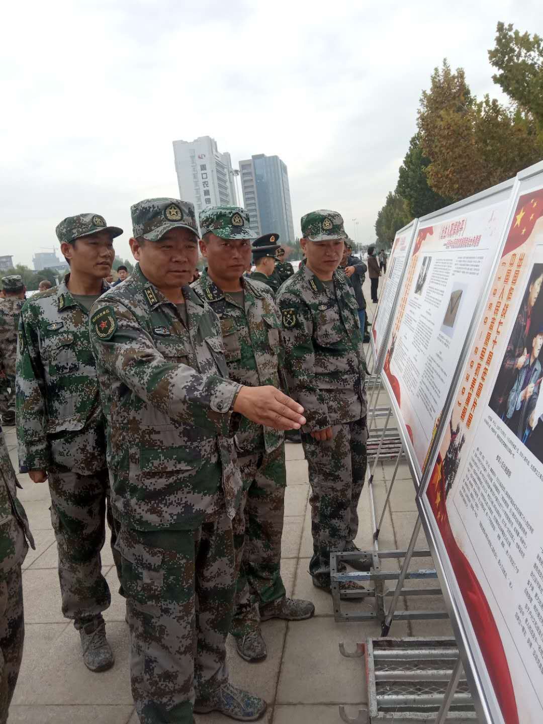 10月26日上午,周口市和諧廣場上口號嘹亮、步伐鏗鏘、隊伍整齊,正在周口市民兵訓練基地參加輪訓備勤任務的西華縣近200名基干民兵,整齊列隊,集體參觀由市委、市政府、市軍分區聯合舉辦的“銘記偉大勝利 捍衛和平正義——紀念中國人民志愿軍抗美援朝出國作戰70周年主題展覽”。