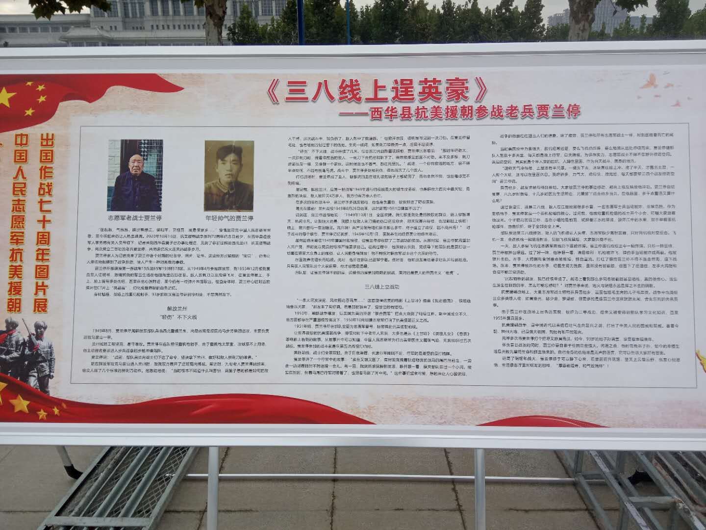 在《三八線上逞英豪,西華縣抗美援朝參戰老兵賈蘭停》英雄事跡展板前,民兵們仔細地看了一遍又一遍,深受感動。“為了國家和民族,為了和平與正義,這位西華老戰士奔赴異域疆場,與強敵殊死較量,事跡可歌可泣,感人至深。我們要以這位本縣老鄉為榜樣,守初心、擔使命,繼承和發揚老一輩的革命精神、光榮傳統和優良作風,進一步弘揚偉大的愛國主義精神,讓紅色基因代代相傳。”來自縣公路局的基干民兵樊麗動情地說。