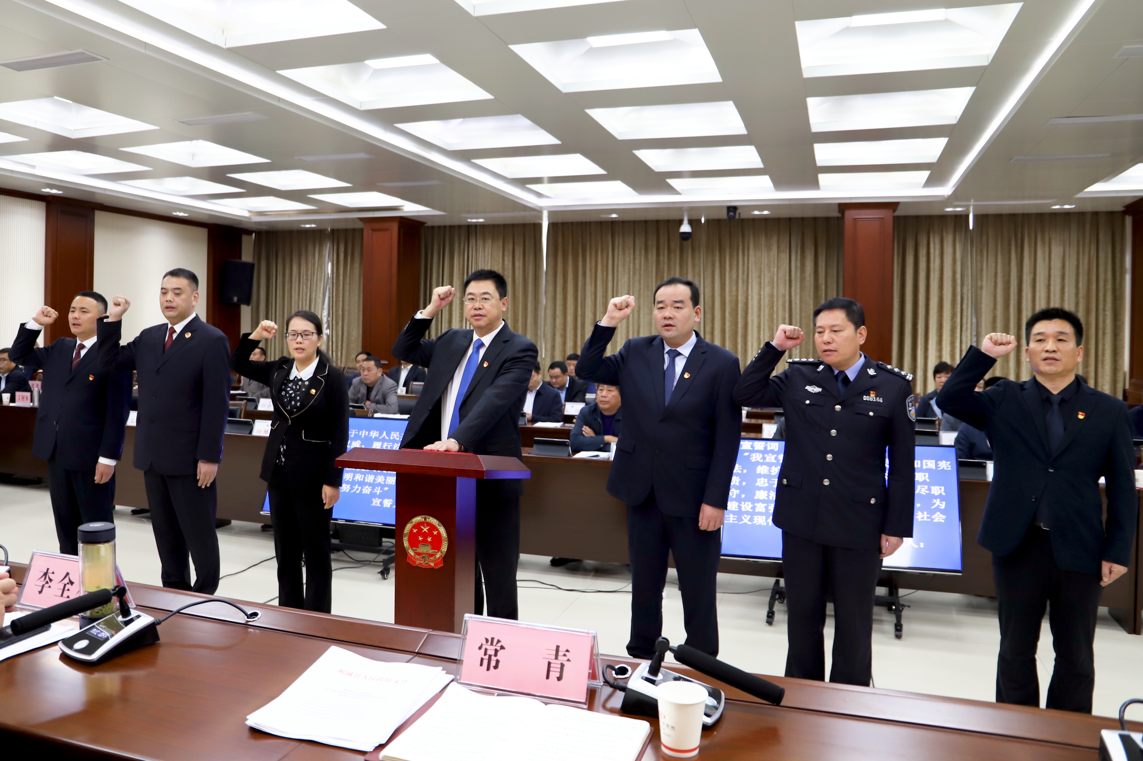 李建軍向新任命同志頒發任命書;在縣人大常委會組成人員監誓下,新任命的同志由常青領誓向憲法進行了宣誓。
