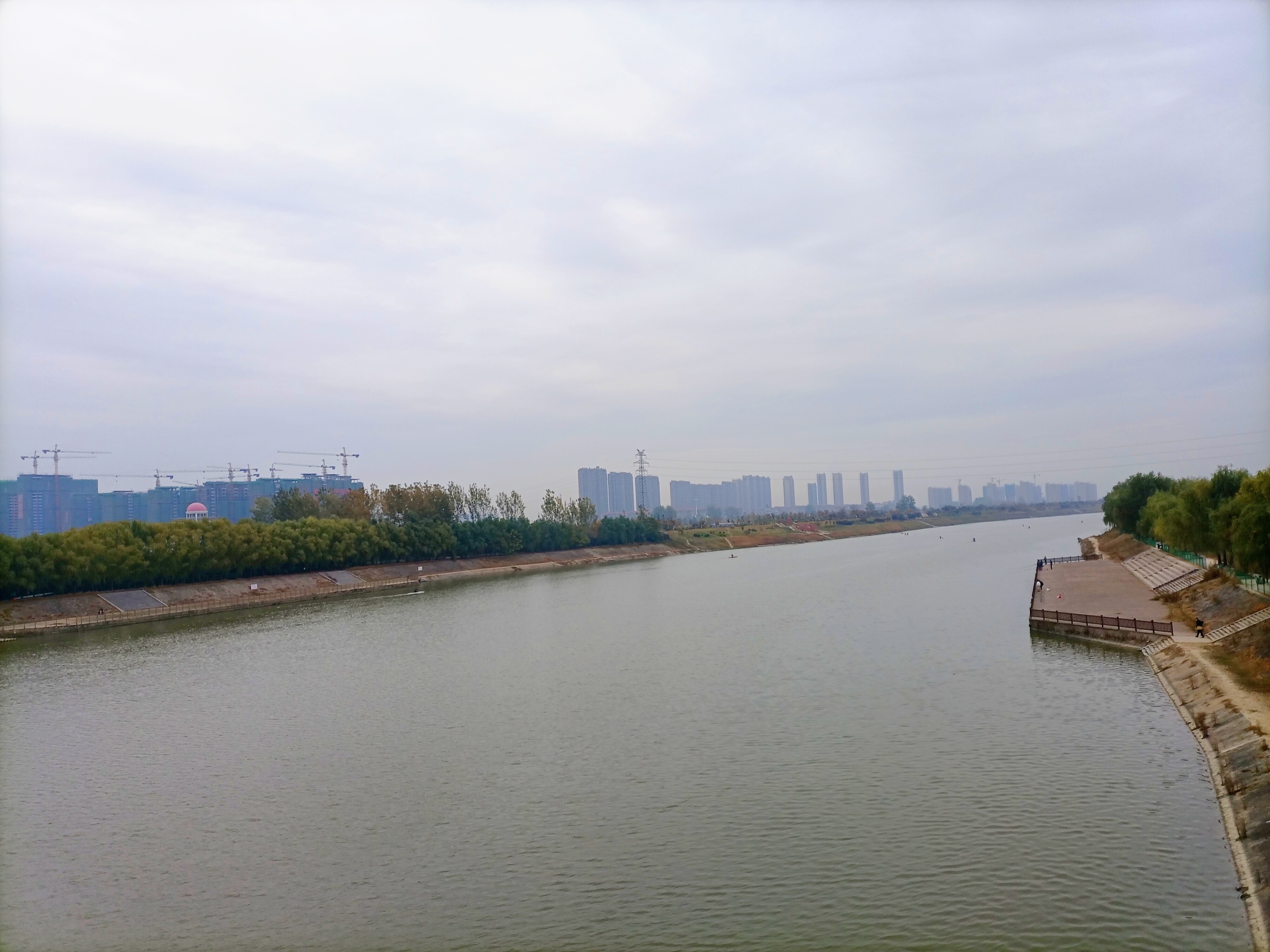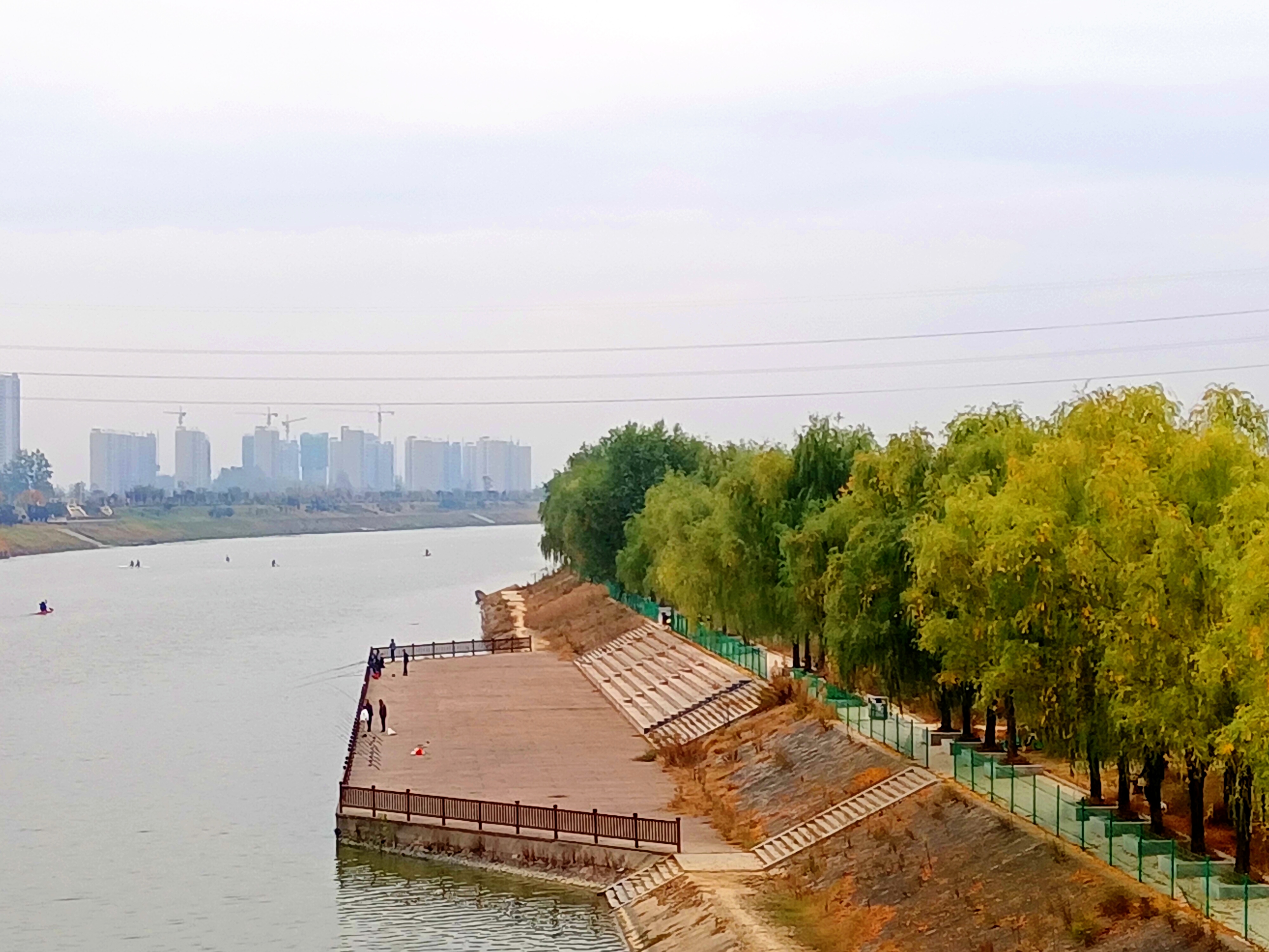深秋時節天漸涼,滿目綠色稍染黃。沙潁河畔秋光美,游人垂釣劃舟忙。
