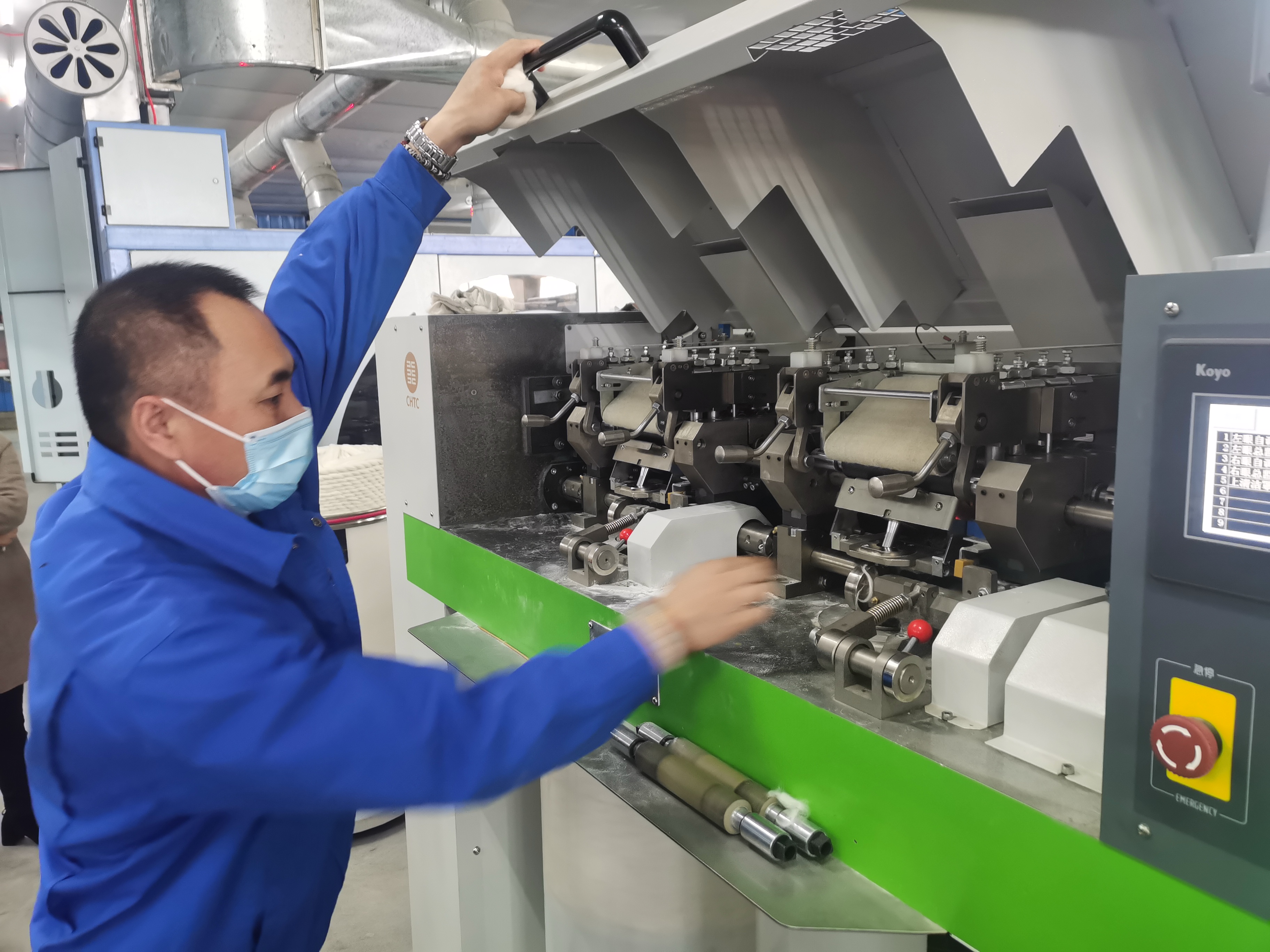11月9日,扶溝縣博發紡織有限公司一期2萬紗錠生產線進口設備安裝完畢,正在試車。