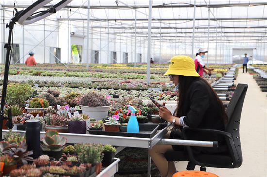“雙11”剛過,河南“多肉之王”、省電商扶貧帶頭人張國健正帶領著團隊在鄲城縣農高區多肉基地為2300多單精準發貨。今年38歲的張國健開過挖掘機、當過銷售員,2014年在南方涉足電商時摔了大跟頭,賠了70多萬元。回到老家白馬鎮辦了多肉種植基地之后,鄲城縣商務局等部門與其對接培訓了網紅、推薦了人才、在農高區設立2650平方米的大棚,張國健邁上了快車道,年銷售額在3000萬元以上。今年又增加9個大棚,包括錢店鎮、石槽鎮兩個供貨代養的扶貧大棚,幫扶30多戶貧困戶脫貧,帶動電商從業人員160余人。