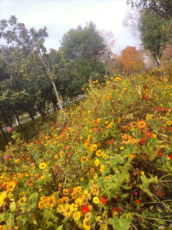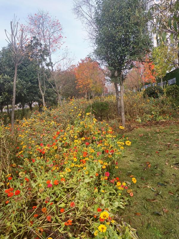 初冬時節,雨后初晴,周口市區的一片小雛菊分外嬌艷,姹紫嫣紅的鮮花如同一片彩色的走廊,讓人不禁駐足欣賞。