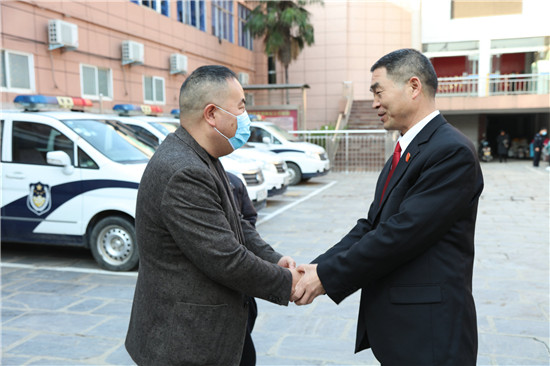 11月13日晚上,吃過晚飯的楊鵬飛與妻子在南渦河邊上散步時,隱約看到有個黑影在河中掙扎,他與妻子走近察看后發現是一個人正在水中掙扎,楊鵬飛急忙與路過的群眾一起實施救助。在眾人的幫助下,大家成功將落水女孩救上岸。所幸女孩并無生命危險,只是被水嗆著受到了驚嚇,意識有些模糊。楊鵬飛等人一面詢問女孩的家庭住址及家人聯系方式,一面撥打了120和110。在女孩子恢復意識后,說出了其母親的電話,楊鵬飛隨即電話通知其母親。在救護人員和女孩的家人趕到現場后,楊鵬飛默默離開。后來,女孩的家長通過查詢報警記錄,幾經周折,打聽到了楊鵬飛原來是太康縣人民法院的一名法官,這才有了文章開頭的一幕。