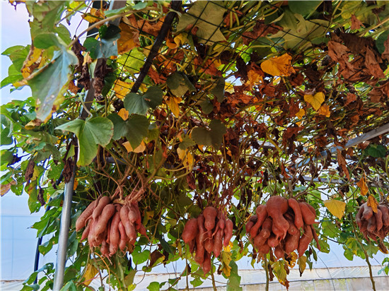 西華縣農(nóng)科所積極開(kāi)展“空中結(jié)薯”試驗(yàn)種植研究,并取得成功。“空中結(jié)薯”采取嫁接技術(shù),選用旋花科植物牽牛作砧木,脫毒薯苗作接穗嫁接而成,嫁接成活后栽到土壤里,搭建棚子,加強(qiáng)薯苗水肥管理,每株插一根小竹木桿,促進(jìn)薯苗快速生長(zhǎng)上棚,在棚上吊花盆,盆內(nèi)放蛭石,生長(zhǎng)到掤上的薯秧壓到花盆里,加強(qiáng)水肥管理。90天結(jié)薯,進(jìn)入10月份把花盆去掉。該技術(shù)打破傳統(tǒng)栽培方式,主要為公園、科技園區(qū)、農(nóng)業(yè)生態(tài)觀(guān)光園、家庭庭院內(nèi)培植,有很好的科研價(jià)值、觀(guān)賞價(jià)值和農(nóng)業(yè)推廣價(jià)值。周口日?qǐng)?bào)·周道客戶(hù)端記者李鳳霞 攝