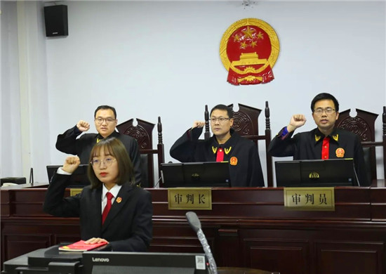 年末歲尾,在各審判庭一線工作忙碌的各辦案團隊,同樣右手舉拳,莊嚴誦讀誓詞。