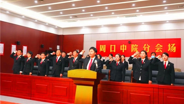 12月4日是第七個國家憲法日。為弘揚憲法精神、維護憲法權威,當日,川匯區人和街道辦事處全體班子成員、機關干部、人大聯絡站代表、各社區“兩委”班子成員90余人在辦事處新時代文明實踐所舉行了憲法宣誓活動。