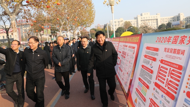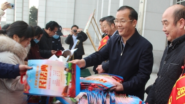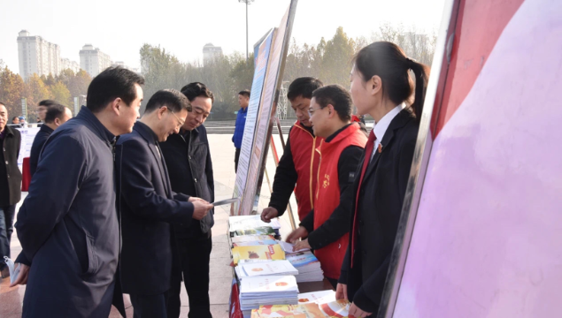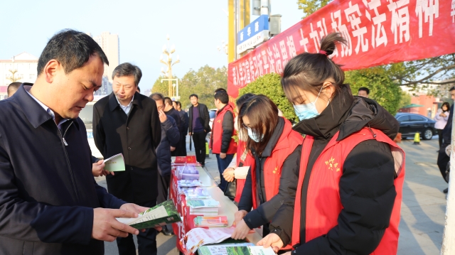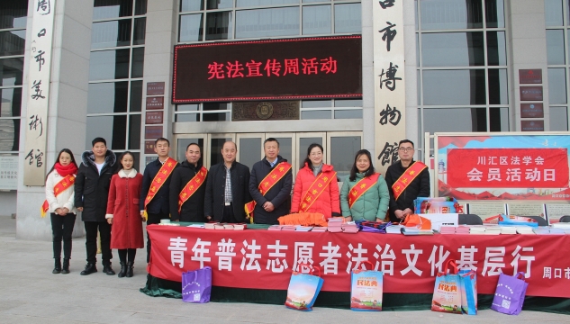 12月3日,在第七個國家憲法日來臨之際,周口市委政法委、周口市法學會、川匯區法學會,聯合團體會員單位市博物館、市文物保護中心開展憲法、國家安全、反邪教宣傳活動,讓遵守憲法和法律在全社會成為習慣、成為自覺。周口市委政法委副書記張曉、二級調研員朱建民參加普法宣傳活動。