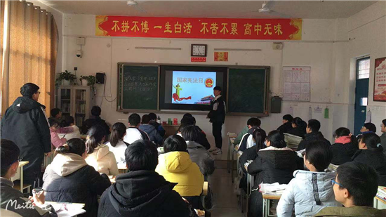 全縣各中小學校通過組織“憲法晨讀”、觀看青少年普法視頻、向學生發放憲法讀本等形式開展法治宣傳活動,引導學生知法、懂法;通過校園宣傳欄張貼海報、懸掛橫幅、校園廣播等渠道,營造憲法宣傳的濃厚氛圍;通過國旗下講話、主題班會、演講比賽、憲法大討論等活動加深學生對憲法的了解,展示學生學習憲法成果。