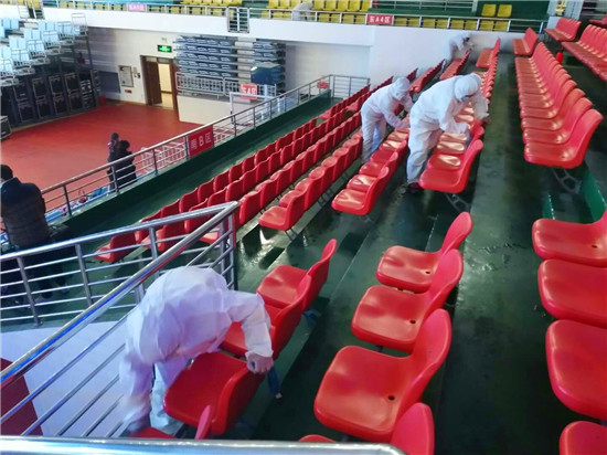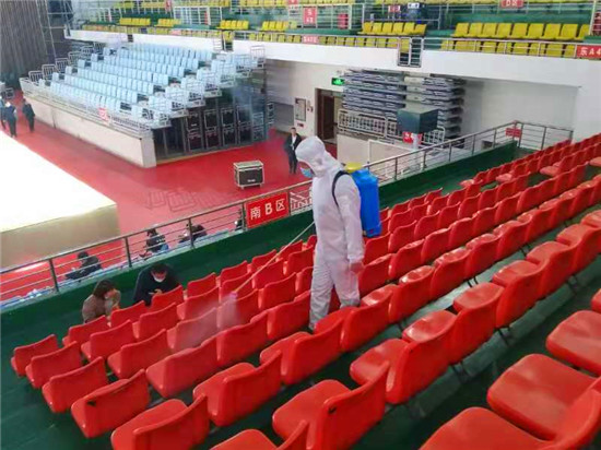 為確保疫情防控工作,保障第一屆周商大會順利進行,11月26日至27日,30余名工作人員對市體育館內外、周商產品展示展覽區進行全面消毒殺菌,包括座椅,走廊,欄桿,門把手等,確保周商大會消殺工作不留死角。周口日報·周道客戶端見習記者 喬小納 攝