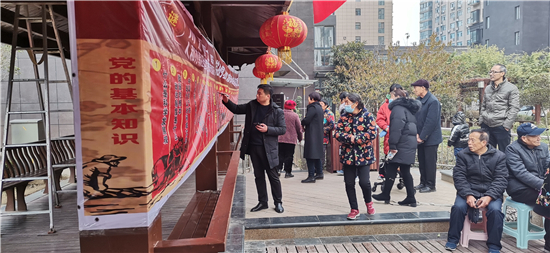 12月11日上午,在中心城區文昌大道的金色東方社區,川匯區文聯舉辦的一場“零距離初心課堂”走進基層群眾,普及黨的知識,受到群眾的喜愛。