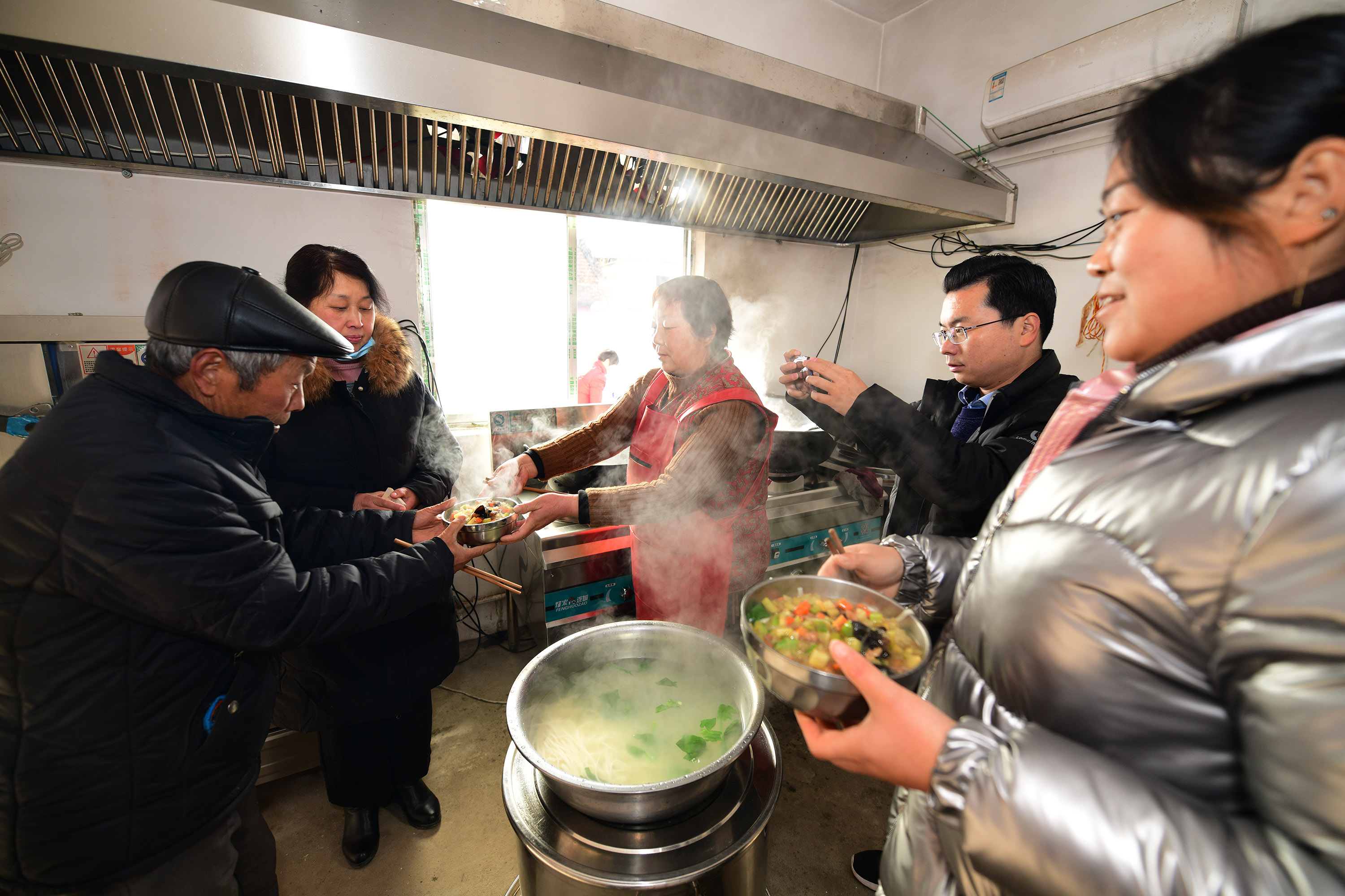 “開飯嘍!”隨著一聲喊,十幾位老人走進炊煙裊裊、菜飯飄香的小院,拿著碗和積分卡,排隊打飯。這是12月15日中午,記者在西華縣奉母鎮(zhèn)七里倉二村看到村食堂開飯的場景。老人每人一碗臊子面,吃得渾身熱乎乎的。這一勺飯,讓這里的老人長壽幸福,從此不再怕風(fēng)雨不再畏嚴寒。這一勺飯,是七里倉二村今年實施土地治理后的村集體公糧,也是實施土地承包制40年來村集體里的首份余糧。
