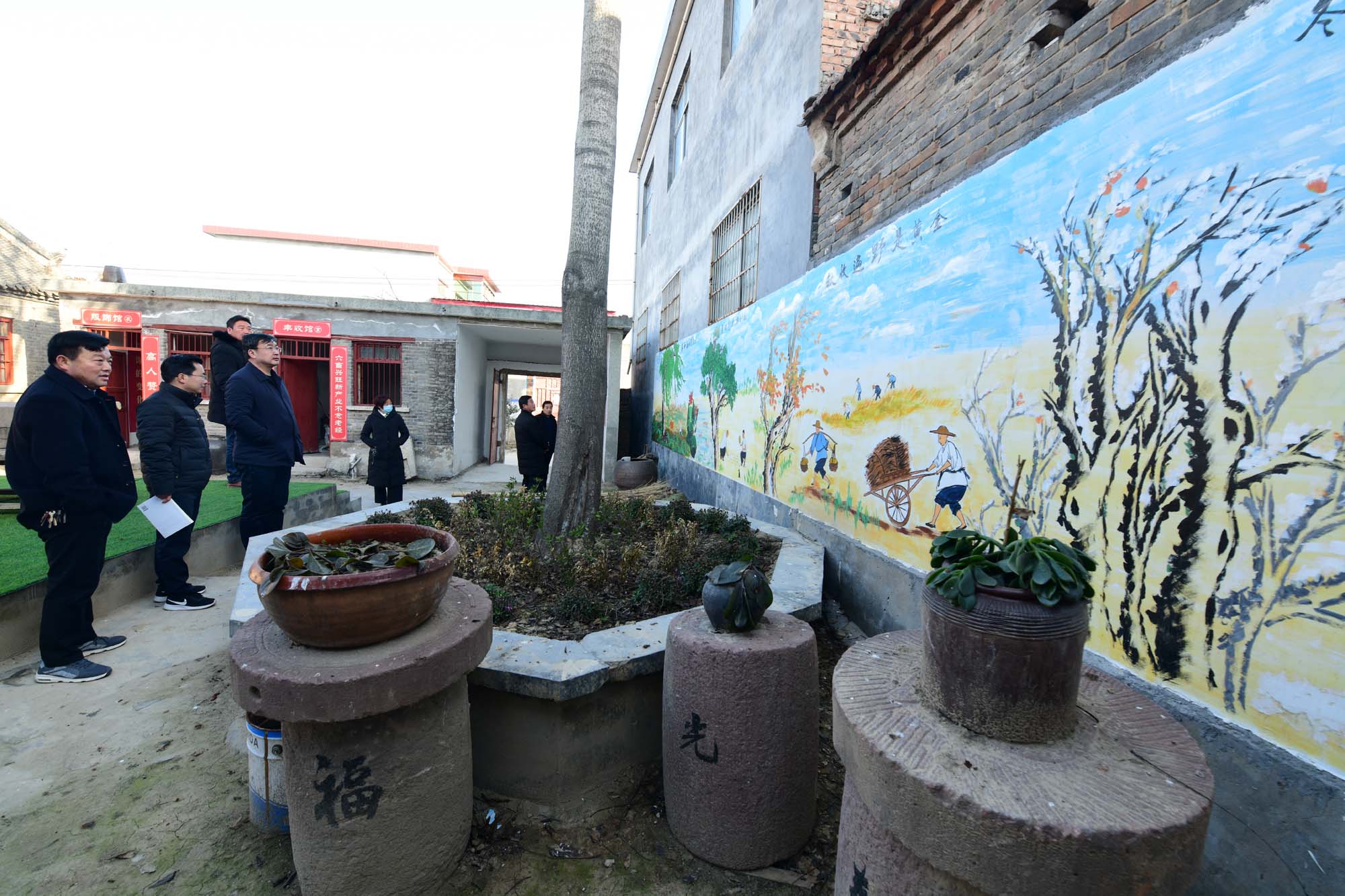 近日,西華縣奉母鎮前邵村建成的村史館吸引著村民前來參觀,村史館以村里一處上個世紀八十年代的老瓦房院落建成,村史館外塑有老農扶犁驅牛耕作的雕像,院內設置多個展室,展出了近50年來村里生產生活使用的用具,墻上繪著畫,院內擺放著石磙等打場農具等,村史館記錄著前邵村50年的發展史。該村黨支部書記邵俊偉說,近年村里通過發展,村民富了,又成立了合作社,村民入了股,每年還能分紅,村民的生活好,農耕實現機械化,村民種地不累了。但是,生活再好,村民也忘不了村里的農耕歷史和自己的根。