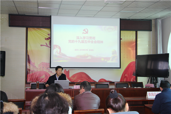 宣講中,翟連生深入解讀了十九屆五中全會的重大意義和主要成果,系統歸納了我國“十三五”時期特別是收官之年取得的突出成就及重要意義,深刻分析了重要戰略機遇期的內涵變化、主要特點及深遠影響;圍繞“十四五”時期戰略機遇新特征、2035年遠景目標和“十四五”規劃目標及指導思想等方面進行講解,并就如何抓好全會精神在審計工作中落地生根進行了解讀。
