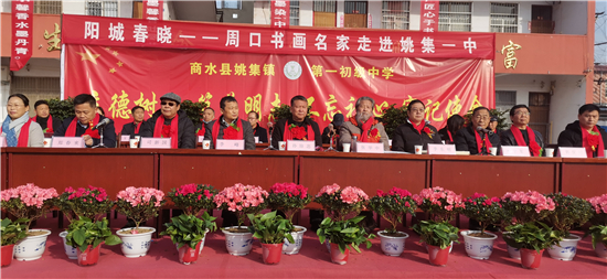 12月25日,商水縣文聯(lián)邀請(qǐng)書(shū)畫(huà)家走進(jìn)商水縣姚集一中開(kāi)展“陽(yáng)城春曉---周口書(shū)畫(huà)名家進(jìn)校園”活動(dòng)。縣政協(xié)主席孫培忠,縣人大常委會(huì)副主任李峰、原縣政協(xié)副主席司新國(guó)、縣教體局局長(zhǎng)鄭春來(lái)、縣文聯(lián)主席劉秋玲出席活動(dòng)。