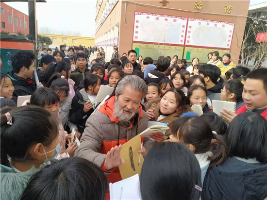 書(shū)畫(huà)家們的到來(lái),受到學(xué)子們的歡迎,千名學(xué)生將書(shū)畫(huà)家們團(tuán)團(tuán)圍住,像追星一樣,討教書(shū)法藝術(shù)。書(shū)畫(huà)家門興致盎然,揮毫潑墨,留下 “上善若水”“業(yè)精于勤”、及花鳥(niǎo)圖、山水畫(huà)等作品100余幅,并與師生現(xiàn)場(chǎng)互動(dòng)、傳經(jīng)送道、指點(diǎn)學(xué)生書(shū)法作品的得失。