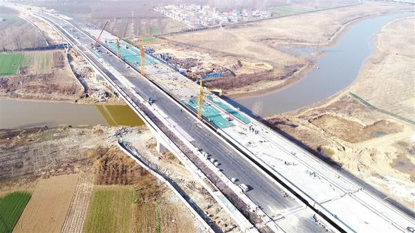 周口北環新建工程項目全線14.445km,其控制性工程為賈魯河大橋,全長904.22m。目前,賈魯河大橋左半幅橋油面已鋪設完畢,右半幅橋油面正在緊張施工,預計本月底完工。