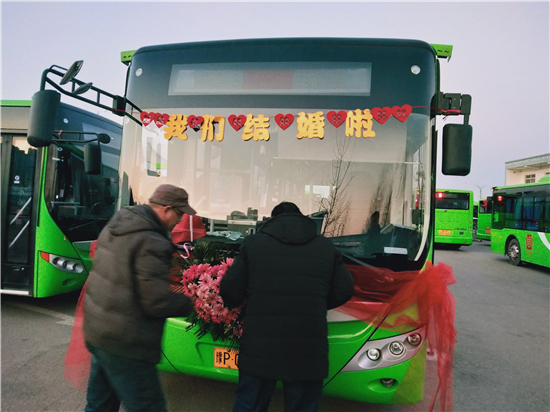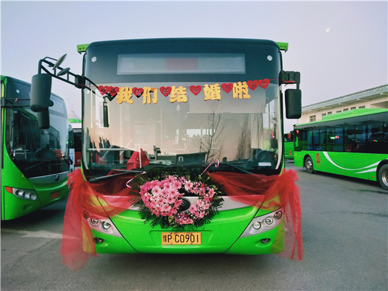 1月1日早上,裝飾一新的6輛迎親公交車吸引了眾人的目光。周口公交一公司19路公交車司機、新郎買亞飛用公交車,迎娶同為公交車司機的新娘裴丹陽,被當作婚車的公交車為新能源車,正是新郎和新娘平時駕駛的19路和9路公交車,以及15路公交車。整個婚禮,親朋好友都是乘坐公交車趕往婚禮現場,環保又有新意。