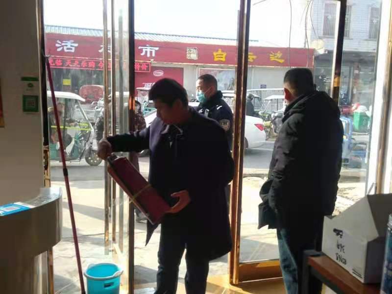1月2日上午,豆門鄉黨委書記張長銀帶領派出所、安監站、環保辦等人員到豆門沿街商超門店、飯店、理發店、浴池、三合一場所、企業等重點場所,嚴查煙花爆竹、散煤燃燒,嚴查消防措施落實和消防設施配備,按照“五有五無”標準,對現場發現的4家消防安全隱患,立即下發限期整改通知書。