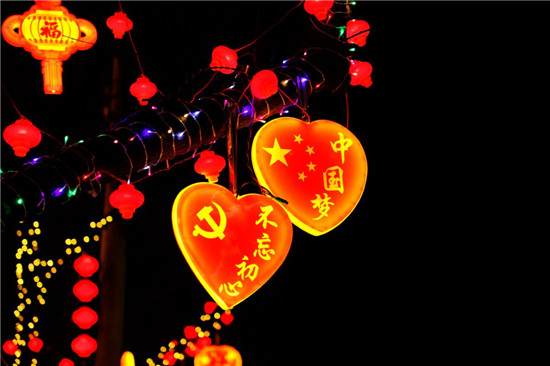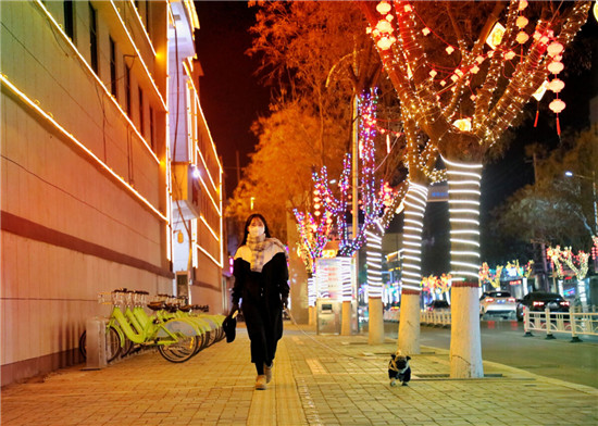 1月7日晚,扶溝縣城桐丘路,放眼望去,整條街道裝飾得色彩繽斕,形式各異的燈飾流光溢彩,美不勝收。景觀樹搖身一變,成了五彩繽紛的“星星樹”,一串串紅燈籠高高掛起,一顆顆“中國(guó)心”錯(cuò)落有致,格外引人注目,引得路過的市民紛紛駐足拍照留念。