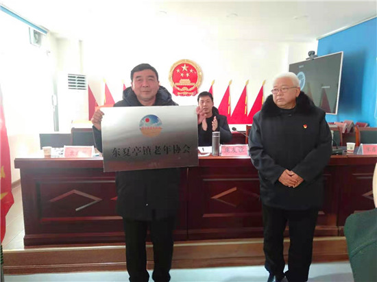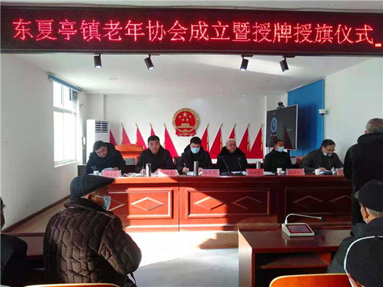 接著,張新芳代表縣老年協會向東夏亭鎮老年協會進行授牌授旗。