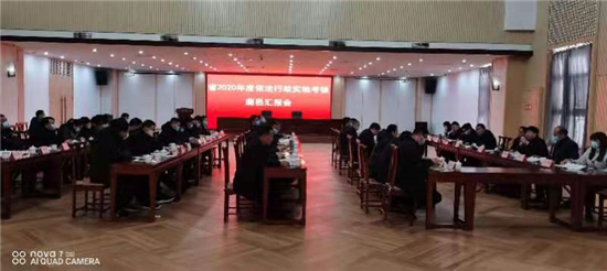 2020年度法治政府建設工作考核分為七個步驟進行:一是聽取了鹿邑縣縣委副書記、縣長李剛作的鹿邑縣2020年度法治政府建設工作報告;二是與鹿邑縣法治政府建設工作領導小組成員單位的部、局委負責同志進行了交流座談,座談會上,縣衛(wèi)健委、人社局負責同志作了代表發(fā)言;三是與鹿邑澄明食品、護理佳實業(yè)等5個駐鹿中小型企業(yè)代表就復工復產和營商環(huán)境情況進行座談交流。考核組赴縣毛刷生產基地進行了走訪調研;四是對縣法治政府建設工作領導小組副組長王曉征和成員單位組織部、市場監(jiān)督管理局主要負責同志職能發(fā)揮情況,復工復產、服務型行政執(zhí)法、為企業(yè)提供法治保障情況及領導干部依法行政能力進行了隨機提問測試;五是抽取縣紀委監(jiān)委、城市管理局、應急管理局15名行政機關工作人員進行了執(zhí)法執(zhí)紀、服務型行政執(zhí)法和法律法規(guī)知識的現場筆試;六是實地檢查考核了城市管理局、應急管理局和縣行政服務中心、渦北鎮(zhèn)政府年度依法行政工作開展與落實情況;七是對鹿邑縣法治政府建設工作成效進行了暗訪調查。