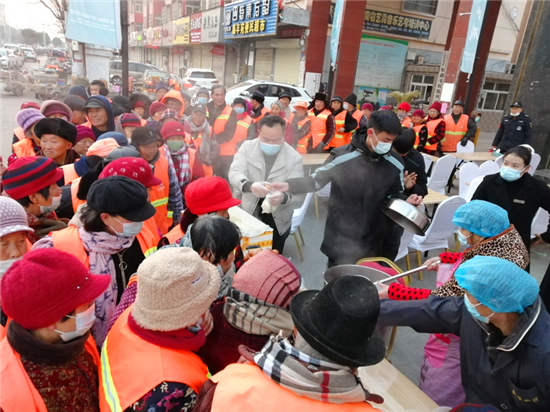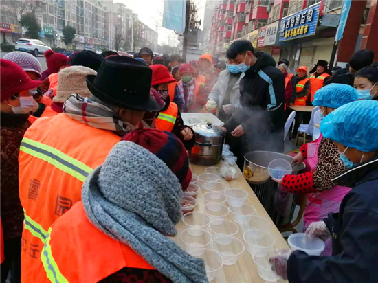 “小孩小孩你別饞,過了臘八就是年。”臘八節(jié)一大早,沈丘縣一小區(qū)門前熬制的臘八粥香味撲鼻,一碗碗熱氣騰騰的粥免費送給附近的居民、環(huán)衛(wèi)工人、公安民警和快遞小哥品嘗,大家一起共話臘八情。
