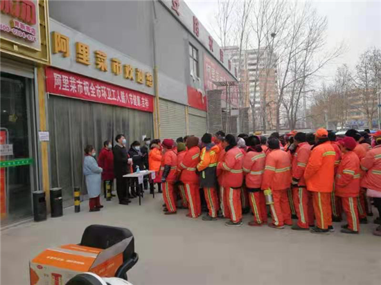 1月20日是傳統節日臘八節,一大早,中心城區萬順達廣場就為川盛環境有限公司的環衛工們準備了臘八粥和毛巾、口罩等防疫物資,阿里市場為每名環衛發放10元代金券,持劵可在市場內消費購物,愛心企業為辛勤的城市美容師在寒冷的冬季送上了一份暖心的祝福。