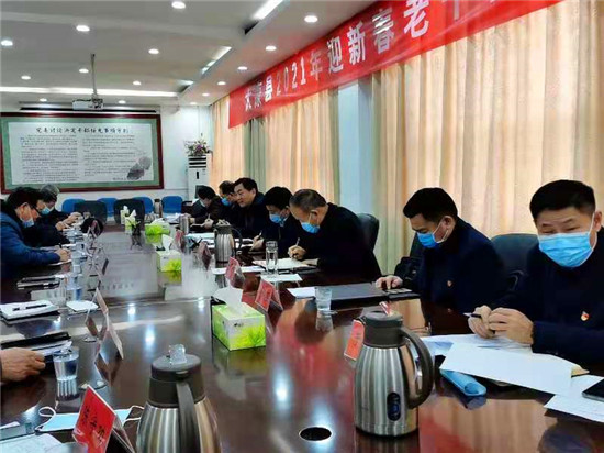 1月24日,太康縣委書記王國璽主持召開2021年迎新春老干部座談會,與老領導、老同志們同迎新春、共話發展。縣領導李錫勇、王智華、張思民、王建林、何明照、張新棟、于闐鎮和從縣級領導崗位上退下來的老干部代表參加會議。