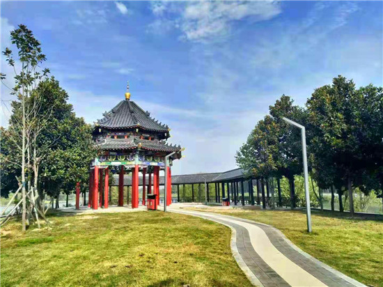 蒲葦水草,曲徑小橋,俯瞰沙河灣濕地公園全景,宛若鑲嵌在中心城區西部的一片翠玉。昔日垃圾遍地、灰坑臭水的西郊沙河灣,變成了周口秀美的“小江南”。