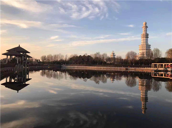 寬闊浩淼的水面、古香古色的船只、天空水中共徘徊的云影、充滿藝術感的建筑、富有趣味的彩色沿湖跑道……初展姿容的永寧湖(原伏羲湖)濕地公園,吸引著眾人的目光和腳步。