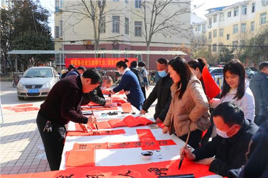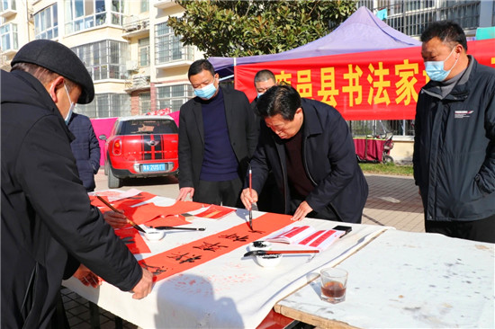 “春節前夕,縣書法家協會為群眾傾心打造文化盛宴,組織若干場義寫春聯進社區活動,旨在弘揚祖國傳統文化,豐富群眾文化生活。”鹿邑縣書法家協會主席韓文甫說。