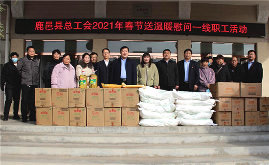 2月1日, 鹿邑縣總工會(huì)組織開展“冬送溫暖”慰問(wèn)活動(dòng)。縣人大常委會(huì)副主任、縣總工會(huì)主席王新民,縣總工會(huì)黨組書記、常務(wù)副主席武超參加活動(dòng),全體班子成員陪同慰問(wèn)。