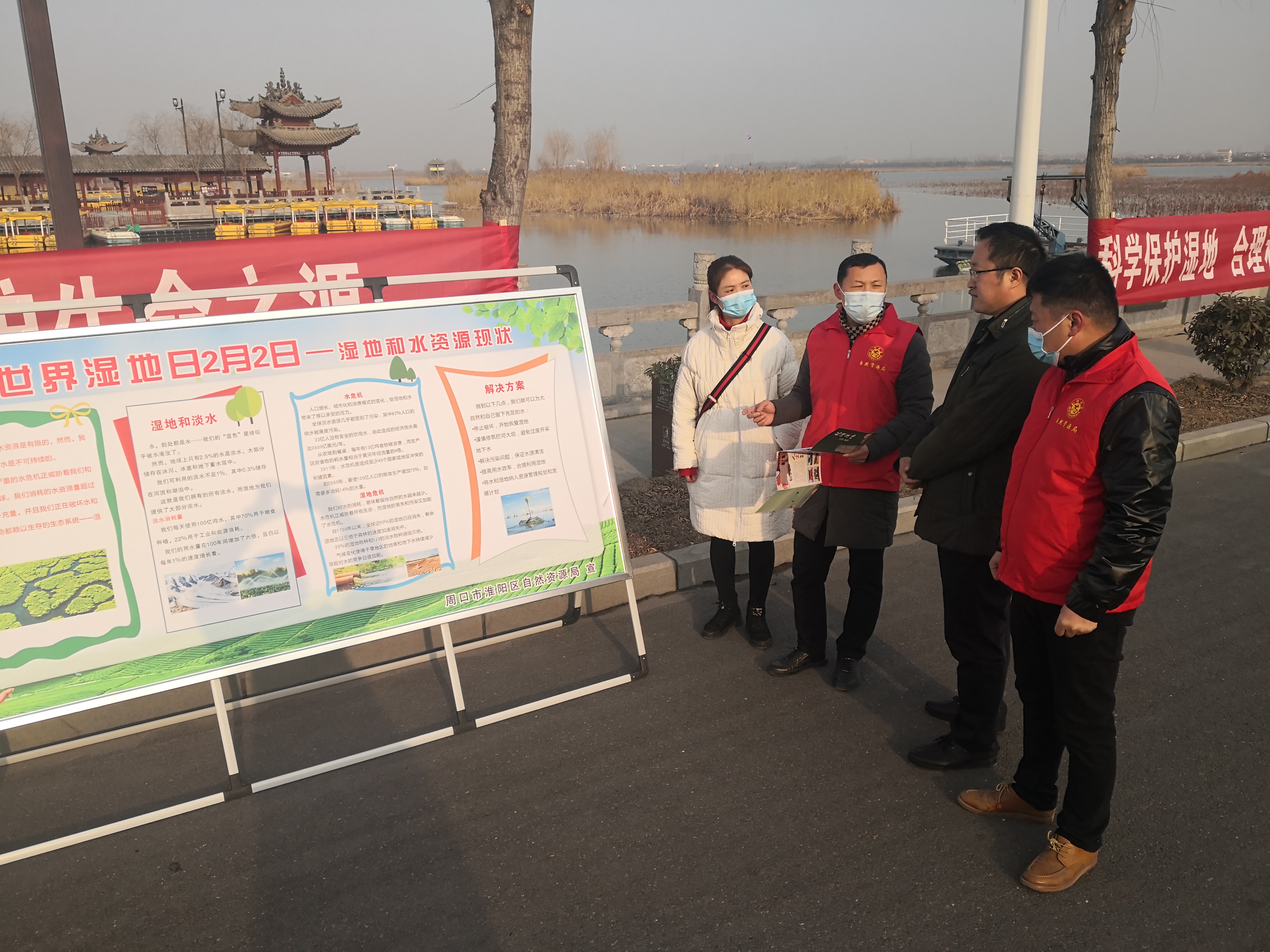 2月2日是第25個“世界濕地日”,今年“世界濕地日”的主題是:“濕地與水---同生命,共相依”。為讓群眾了解濕地和水資源的現狀,增強大家的生態保護意識,淮陽區相關單位和志愿者在龍湖邊舉辦了宣傳活動。