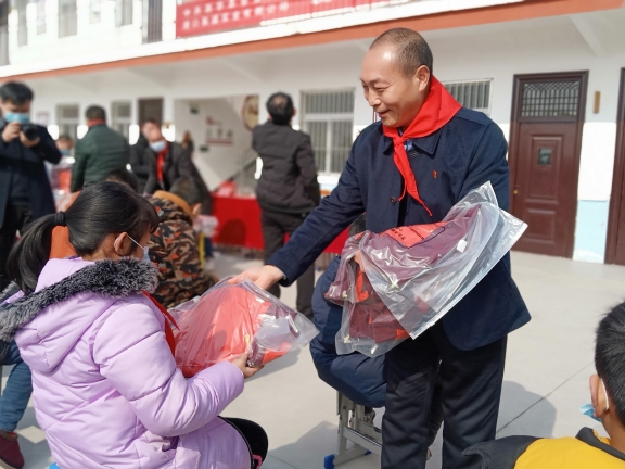 春節(jié)臨近,方凱自掏腰包6萬余元,購買164套新校服捐贈(zèng)給西華縣艾崗鄉(xiāng)半截樓小學(xué),一如既往地將大愛播撒與傳遞。說起方凱的愛心行動(dòng),那是不勝枚舉。方凱10余年來堅(jiān)持幫貧濟(jì)困,每年都采取不同的方式,為貧困戶、貧困大學(xué)生、環(huán)衛(wèi)工、留守兒童、敬老院、貧困學(xué)校、福利中心智障孩子和災(zāi)區(qū)等進(jìn)行愛心捐助,已經(jīng)累計(jì)捐款捐物達(dá)1600多萬元。為了表達(dá)對(duì)方凱的謝意,西華縣艾崗鄉(xiāng)半截樓小學(xué)向方凱贈(zèng)送了“大愛無疆育英才,心系未來報(bào)黨恩”的錦旗,同時(shí),還鄭重聘請(qǐng)方凱為該校名譽(yù)校長(zhǎng)。