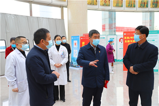 聽取匯報后,孫鵬前往發熱門診實地查看了解疫情防控工作的各項措施,就當前疫情防控重點與一線人員進行深入交流。新冠疫情暴發以來,港區醫院主動承擔公共衛生職責,協助港區黨委、管委會為港區群眾筑起了一道堅固的健康安全防線。武漢疫情暴發期間,周口港區醫院派出一支由8人組成的援鄂醫療隊前往武漢,在武漢商職醫院收治新冠肺炎患者117人。孫鵬對港區醫院在新冠疫情防控工作中展現出的擔當、作為進行表揚,對8位援鄂醫療隊員冒著生命危險,無私奉獻、勇于擔當的敬業精神表示贊賞。