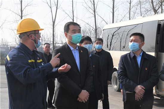 在中國石油商水油庫,孔陽詢問企業安全生產責任及值班值守制度落實等情況。他叮囑企業負責人,要壓實企業安全生產主體責任,規范和強化重大危險源安全風險防控工作,認真執行安全生產各項規定,堅持24小時值班制度,時刻繃緊安全弦,切實保障油庫安全平穩運行。