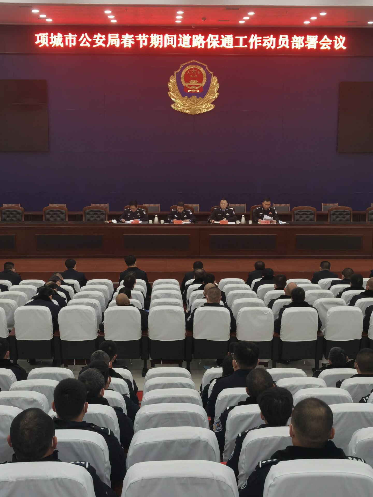 王貴峰就做好今年春節期間的道路保通工作進行了具體部署,提出了四點要求。一是要清醒認識面臨的新形勢新要求,增強“四個意識”,提升政治站位,以強烈的責任感和使命感切實做好春節期間的道路保通工作;二是交警部門要牢記責任和擔當,發揮主力軍作用,與各鎮政府、派出所密切配合,協同作戰,全力以赴開展道路保通工作;三是要加強隊伍管理,規范執法行為,強化工作紀律,落實督察措施,塑造公安民警良好執法形象;四是要做好研判分析,突出工作重點,落實工作措施,全力保安全、保暢通。 陳重強調,此次會議吹響了全面做好今年春節期間全市道路保通工作的沖鋒號角,項城警方要堅定必勝的信心和決心,認真按照局黨委工作部署,迅速行動起來,全力做好道路保通工作,努力為全市人民營造平安、暢通、有序的春節出行環境,確保人民群眾滿意、舒心過節。交警大隊負責人李洪中同志宣讀了《項城市公安局春節期間保通工作實施方案》。