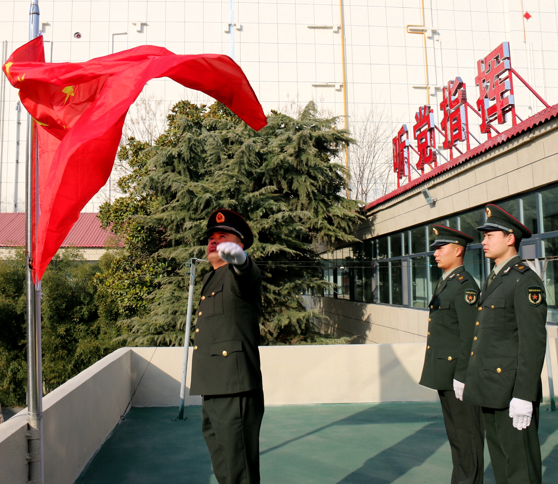 為激發官兵扎根基層、愛國奉獻和牢記強軍目標、獻身武裝工作實踐的政治熱情,該部決定在春節舉行升國旗儀式。“升國旗,既是一次儀式教育,更是一次愛國主義教育,凝聚了官兵愛國情、報國志。激勵大家時刻牢記習主席建軍指示要求,以時不我待的精神投入到實戰化練兵備戰,扛起當代國防動員的使命擔當。”該部政委李峰如此說。