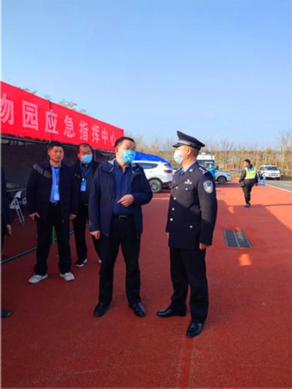 調研中,李宗喜實地查看了景區周邊疫情防控、通訊保障、交通疏導、治安防控、應急保障、停車秩序等工作落實情況,對堅守一線的全體工作人員表示慰問,希望各有關部門要繼續加強周口森林野生動物世界春節期間值班值守和各項保障工作,確保無疫情事故、無刑事治安事件、無安全事故、無負面輿情和持續炒作事件、無大面積交通擁堵、無園區周邊違規經營等“六個無”的工作目標。同時,園區要與周口市公安局川匯分局加強溝通協作,盡快成立警務室,形成長效管理機制,保障園區平穩安全運行。