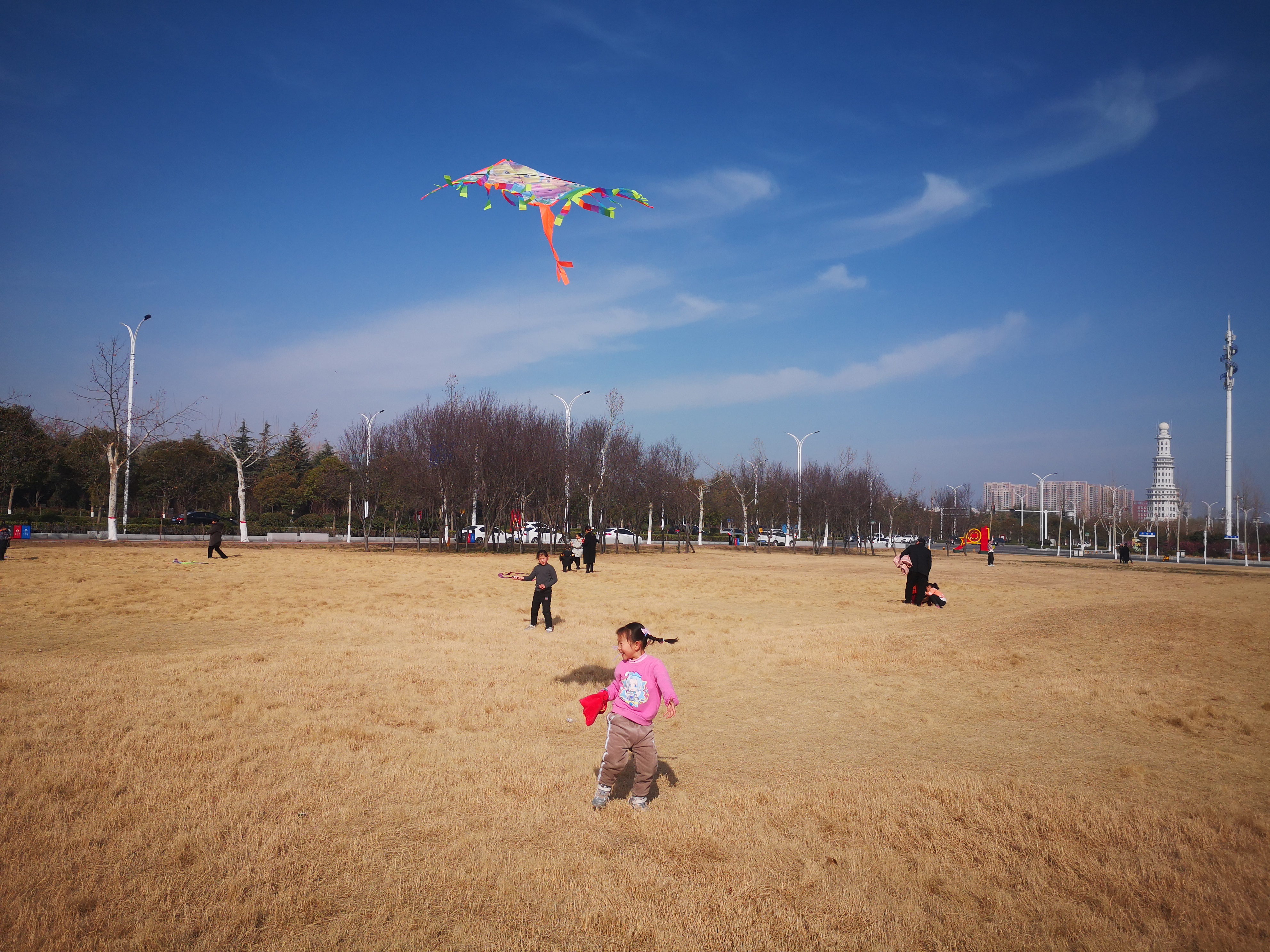 2月16日,周口大道旁邊的大草坪上,小朋友在放飛風箏。當日,藍天白云,春光正好,民眾樂享春節假日。