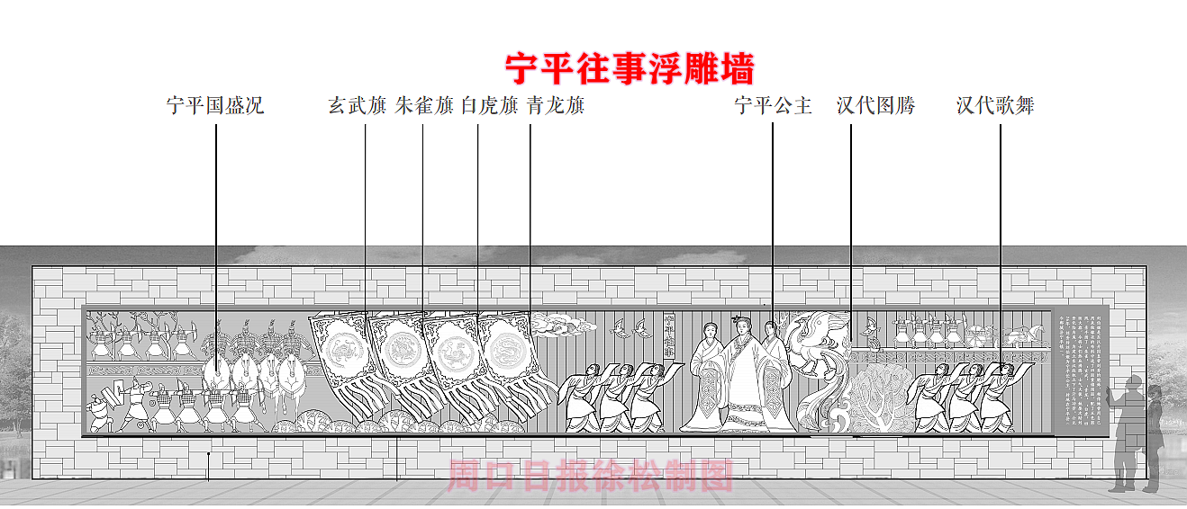 府東路北頭與鄲淮路交叉口占地近30畝的文化廣場是調(diào)水渠“三段銜一園”景觀中核心形象段之一。除了綠樹、百花、清流、步道,以及音樂燈光噴泉、西側(cè)建設(shè)有接近生態(tài)自然的親水觀光平臺之外,這里的5塊浮雕文化墻值得我們深入了解。這組浮雕墻讓古老與現(xiàn)代在這里交相輝映,昭示著無論社會和科技如何進(jìn)步,源遠(yuǎn)流長的傳統(tǒng)文化永遠(yuǎn)是鄲城人的情感歸宿和精神家園。文化廣場的園路、綠地、建筑等都以鄲城歷史文脈為中心,將現(xiàn)代生活元素與歷史文化元素有機(jī)結(jié)合,營造了一個文化與生態(tài)自然融合的新地標(biāo)。