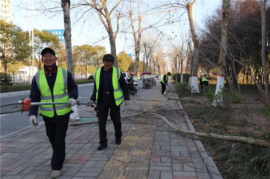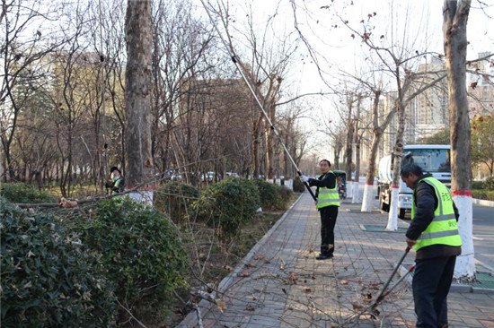 2月21日,城鄉一體化示范區城管局幾名市政管理人員在修剪周口大道兩旁的行道樹。據了解,通過一年的生長,行道樹衍生了許多無用枝條,如果對這些無用枝條不進行修剪,勢必影響今年的長勢。目前,道路兩邊的行道樹開始發芽,正是一年當中修剪的有利時機。城鄉一體化示范區城管局每天出動三班技術人員,對轄區內的行道樹進行修剪。