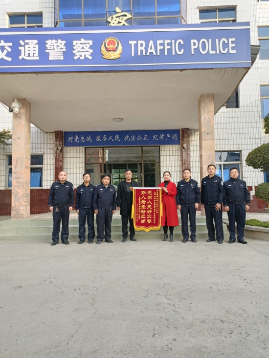 2月22日上午,太康縣公安局交警大隊院內,兩位學生家長將一面寫有“人民好交警 助人為樂新風尚”的錦旗送到太康縣公安局交警大隊大隊長梁輝和幾名交警手中,感謝他們幫助找到走失的孩子。②8 周口日報·周道客戶端記者 張洪濤攝