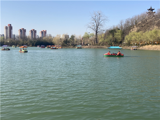 在槐香湖邊,年輕人三五結(jié)伴登上游艇,“坐船能到湖那邊的小島,島上也有槐樹(shù),拍照肯定特別漂亮。”返鄉(xiāng)大學(xué)生把七星島上的景色留在了自己的相機(jī)里。七星島與槐香湖相連的橋上,人潮擁擠,有的人席地而坐,觀賞著橋上的風(fēng)景。當(dāng)問(wèn)道在外市工作的王先生游玩感受時(shí),他回答到:“年后上班沒(méi)時(shí)間鍛煉身體,今天我把全家人帶來(lái)登山,呼吸一下新鮮空氣。”③5