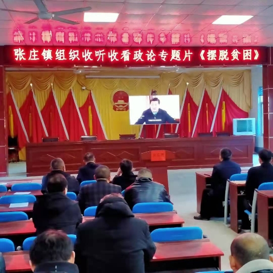 商水縣張莊鎮組織扶貧干部收看專題片《擺脫貧困》