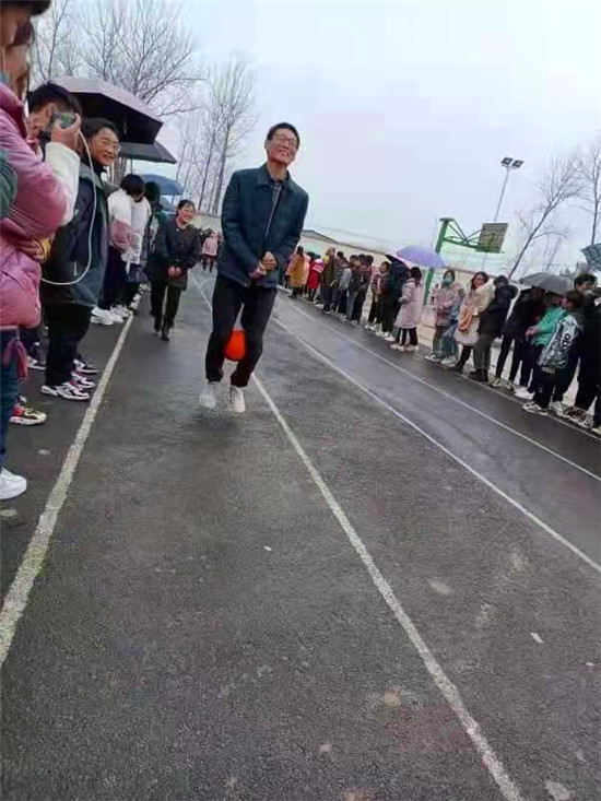 隨著裁判員一聲令下,比賽開始,參賽老師們快如風(fēng)、急如電,奮力沖向前方,把球接力給下一位隊(duì)員。接球的隊(duì)員等待已久,接過球立馬向前飛奔。整個(gè)操場上,加油聲、喝彩聲此起彼伏,熱鬧非凡。學(xué)生們擠滿了賽場,用熱烈的掌聲和歡呼聲為老師們加油,期盼著自己的老師有精彩的表現(xiàn)。