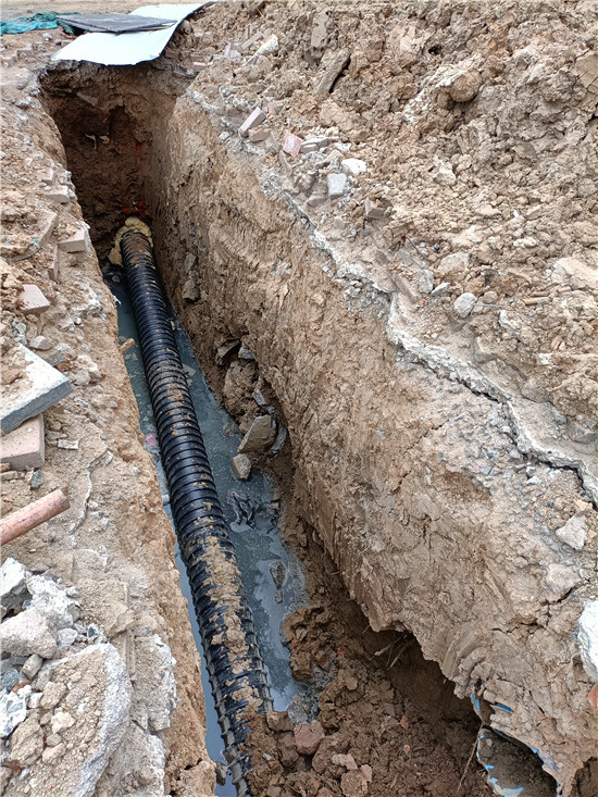 居住在維也納小區(qū)的幾位居民分析說,維也納大門前邊的污水有可能是對(duì)面施工堵塞下水道后造成污水溢出造成的。記者又來到維也納小區(qū)對(duì)面的馨蓮茗苑小區(qū)門前,那里路面沒有積水,正在進(jìn)行的市政工程施工工地也沒有看到有大量污水流淌,在馨蓮茗苑大門東邊不遠(yuǎn)處有一條挖開的管道溝槽,溝槽的底部有少量污水。剛下班的一名工人師傅說,現(xiàn)在他們正在修建新的下水道,管道建好還得一段時(shí)間,舊的排水管道還在使用,至于路南邊的污水與正在施工的工程有沒有聯(lián)系,他們也說不清楚。